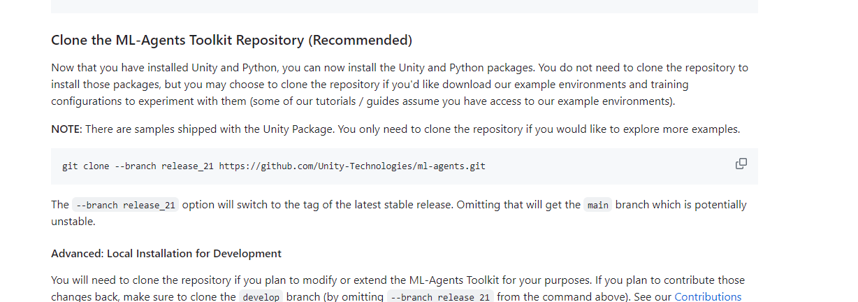git clone --branch release_21 https://github.com/Unity-Technologies/ml-agents.git