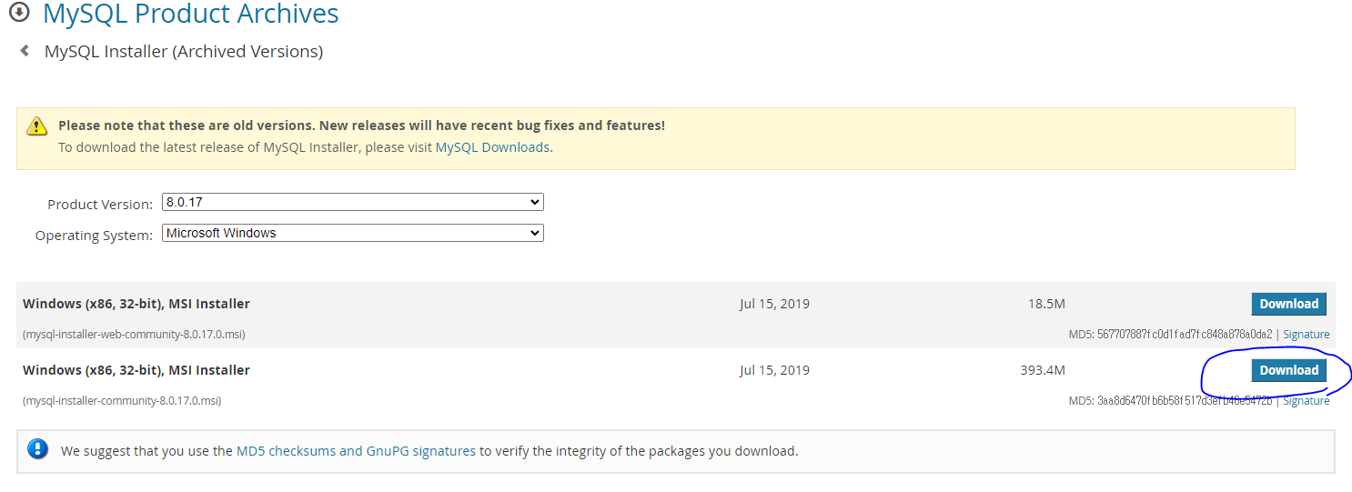 Please note that these are old versions. New releases will have recent bug fixes and features! To download the latest release of MySQL Installer, please visit MySQL Downloads. MySQL open source software is provided under the GPL License.