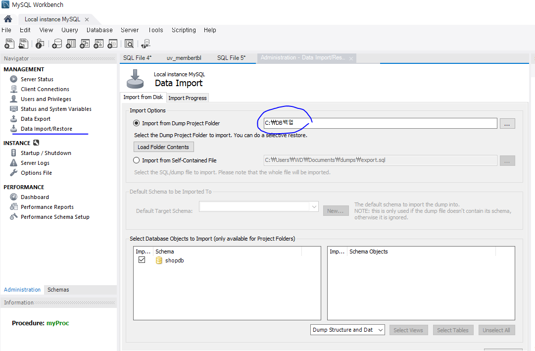 삭제가 되거나 문제가 생길 경우 Import 해서 저장된 데이터를 가져올 수 있다.