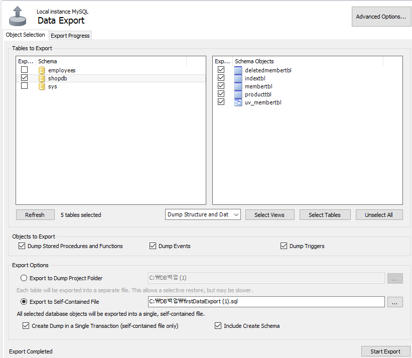 C에 DB백업이라는 폴더 생성