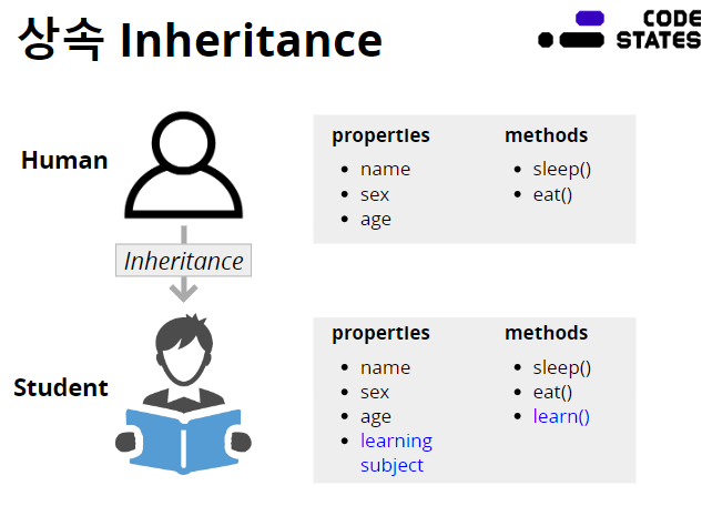 속은 부모 클래스의 특징을 자식 클래스가 물려받는다.