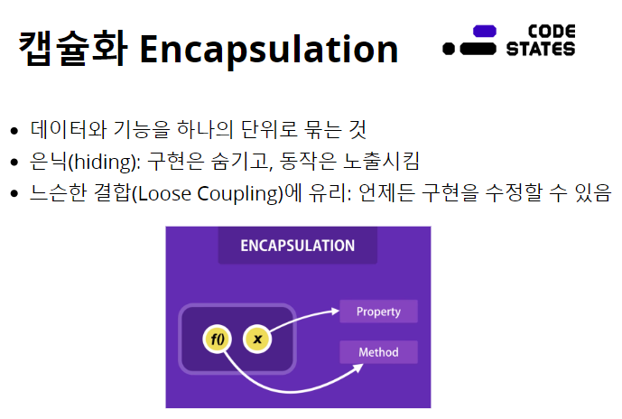 캡슐화라는 개념은 "은닉화"의 특징도 포함하고 있는데,
