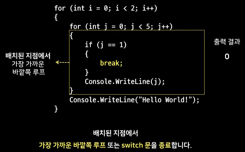 가장 가까운 바깥쪽 루프 또는 switch 문을 종료
