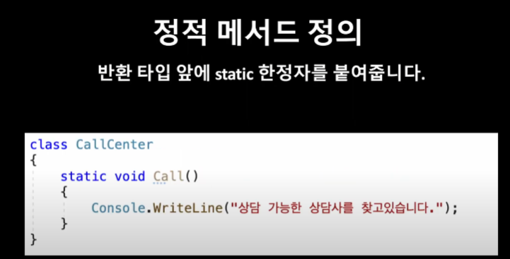 Console.WriteLine(CallCenter.number); //정적 맴버는 클래스 이름으로 엑세스