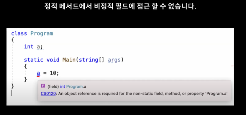 정적 메서드는 비정적 필드 및 메서드에 접근 불가