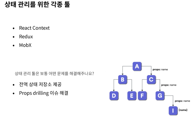이러한 상황에 다양한 상태관리 라이브러리(Redux, Context api, Mobx, Recoil)를 사용하여 방지할 수 있다.