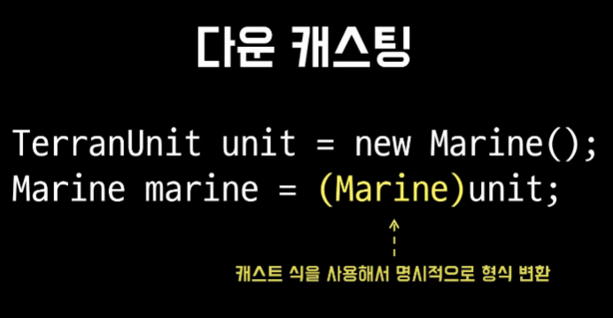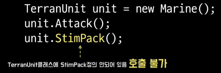 //Marine marine = (Marine)unit; //명시적 다운캐스팅