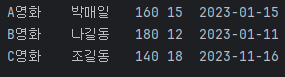 - 각각의 Movie 객체에 대해 여러 속성에 값을 할당하고, 마지막으로 이를 출력하여 각 영화의 정보 보여줌