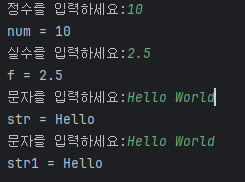 마지막 str1을 입력하지 않았는데 자동으로 Hello와 World 잘려서 바로 출력됨을 알 수 있다.