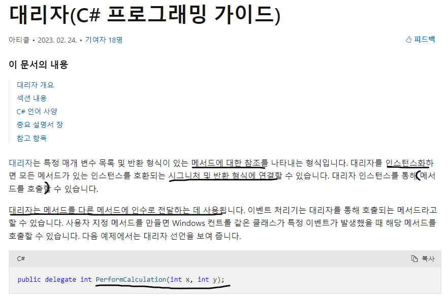 https://learn.microsoft.com/ko-kr/dotnet/csharp/programming-guide/delegates/