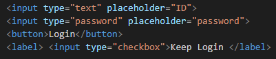 input을 사용하여 ID와 password로 칸을 두개 만들었고 이러한 결과를 얻을 수 있다.