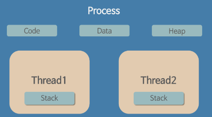 1. 스레드는 프로세스 내에서 각각 Stack만 따로 할당받고 Code, Data, Heap 영역은 공유한다.
