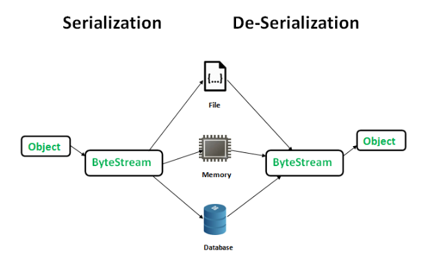 반대로 역직렬화를 할 때는 일련의 형식을 가진 데이터를 읽거나 메모리에 쓸 수 있도록 변환하는 것이다.