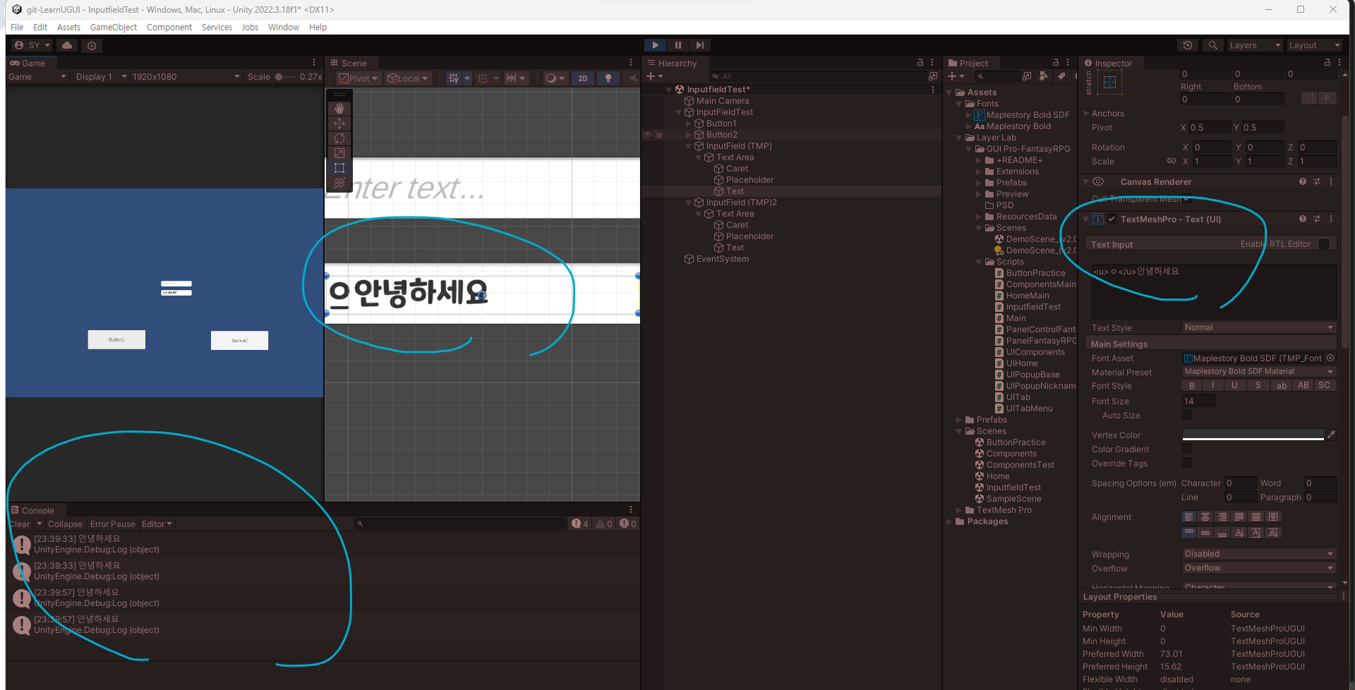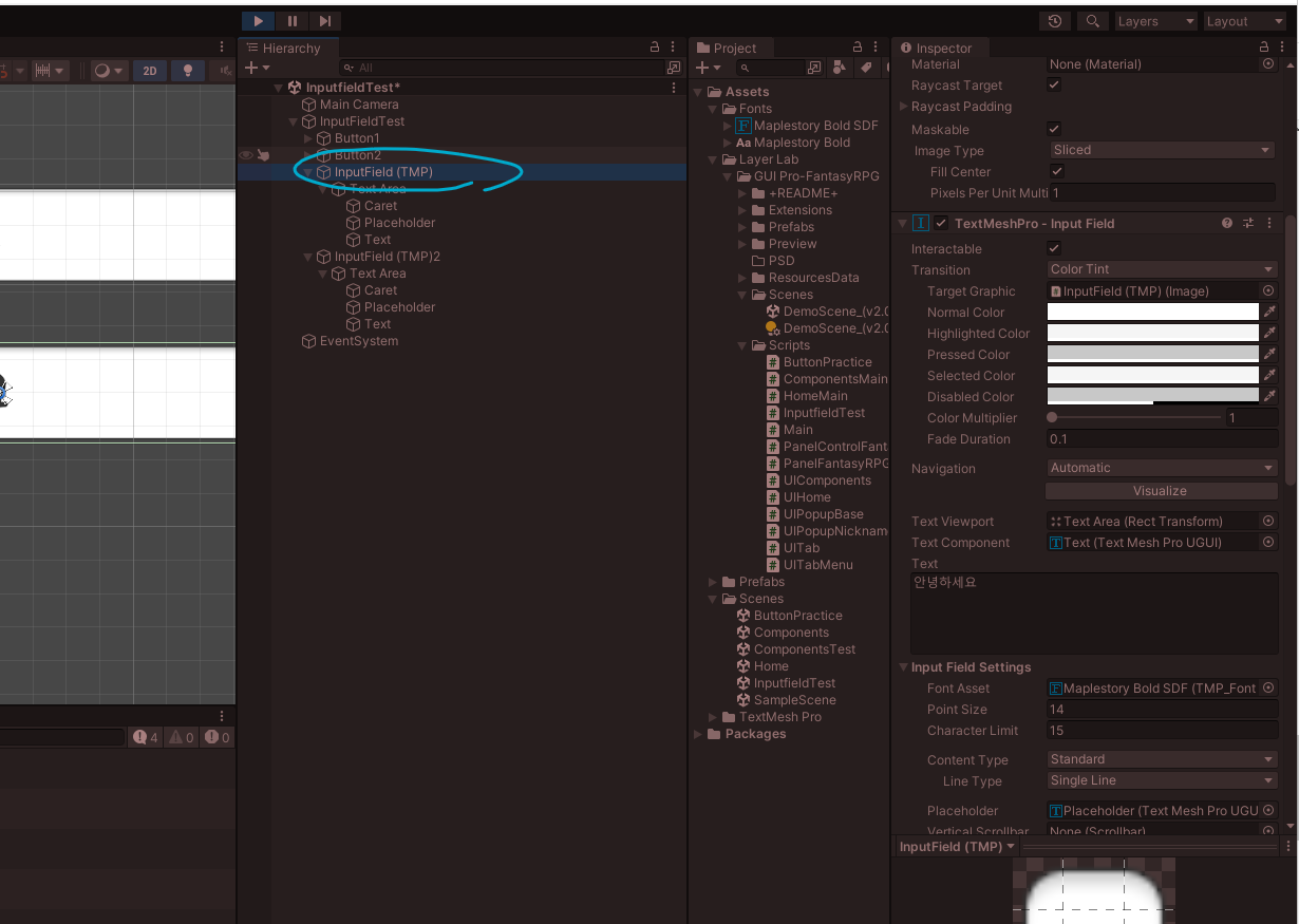 InputField (TMP)에 적으면 텍스트가 적히지만