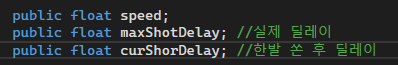 public float maxShotDelay; //실제 딜레이