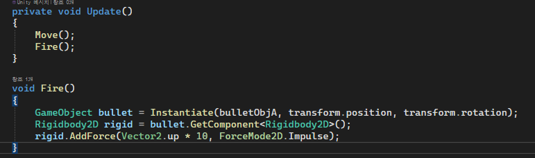 이제 총알을 만들 로직을 Player 스크립트에 작성할 것이다.