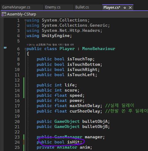 그런데 플레이를 하다가 한번에 두발을 맞으면 체력이 2가 줄어드는 곳을 볼 수 있는데 이것을 수정할 것이다.