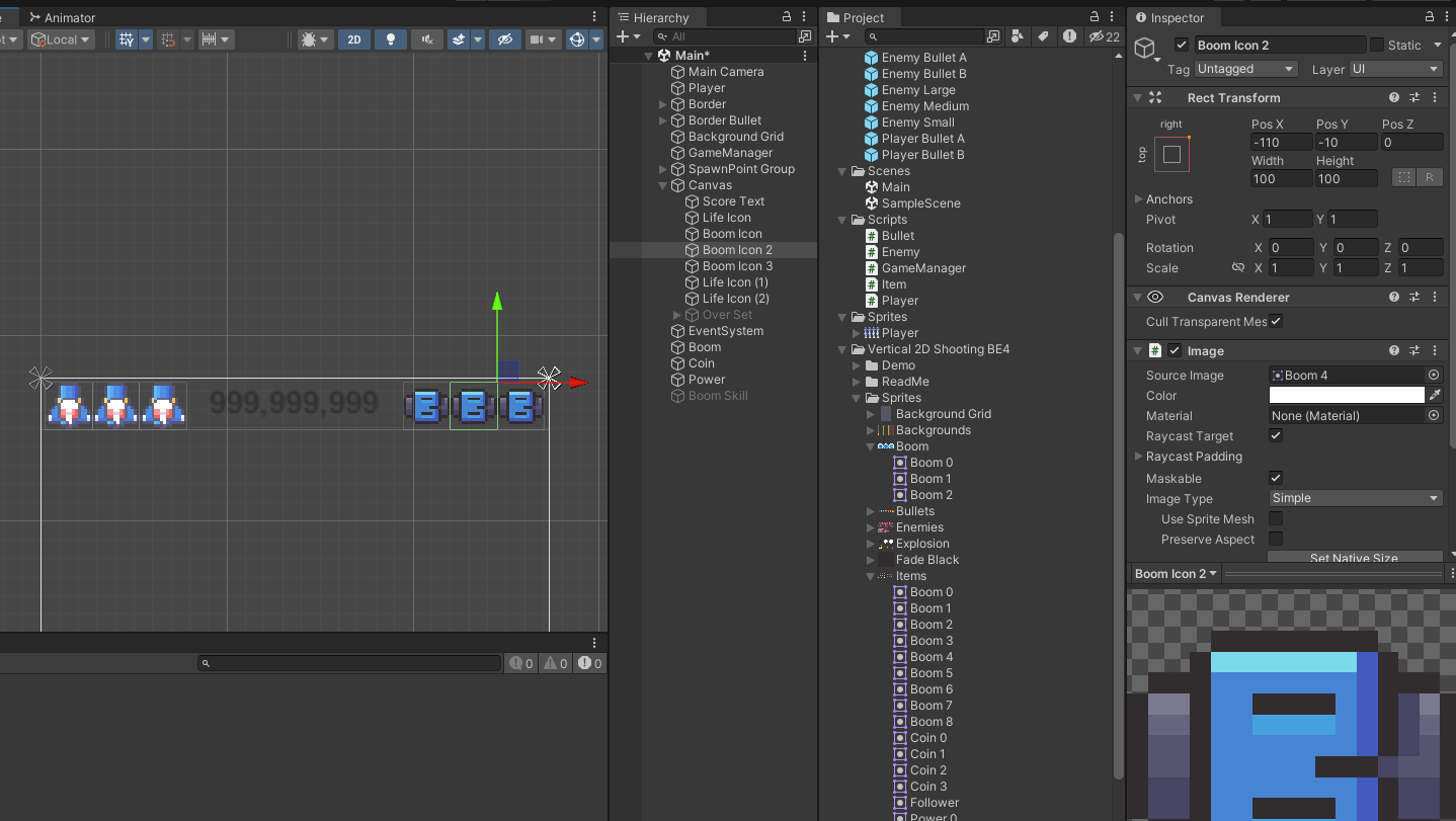 붐 아이콘도 라이프 아이콘을 복사해서 앵커의 위치를 바꾸어 준다.