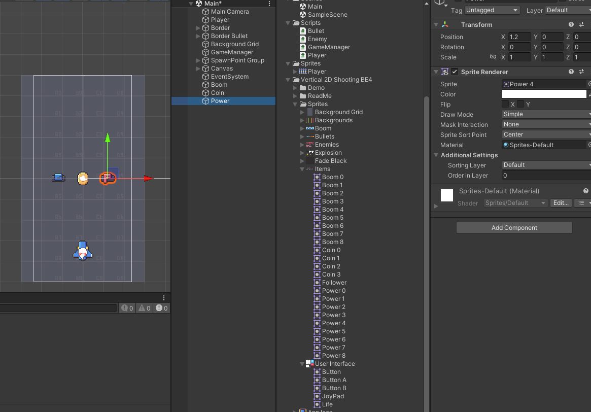 파워 아이템을 먹으면 공격력이 증가되어야 하기에 변수를 따로 하나 더 선언