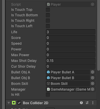 총알처럼 콜라이더와 리지드바디 추가 + 이즈트리거 체
