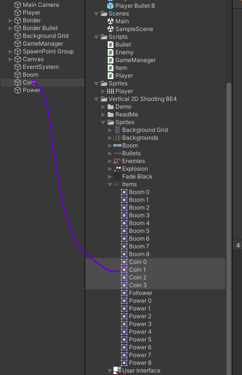 item 스크립트에 퍼블릭으로 string으로 선언하고 각 아이템의 이름을 직접 적어줄 것이다.