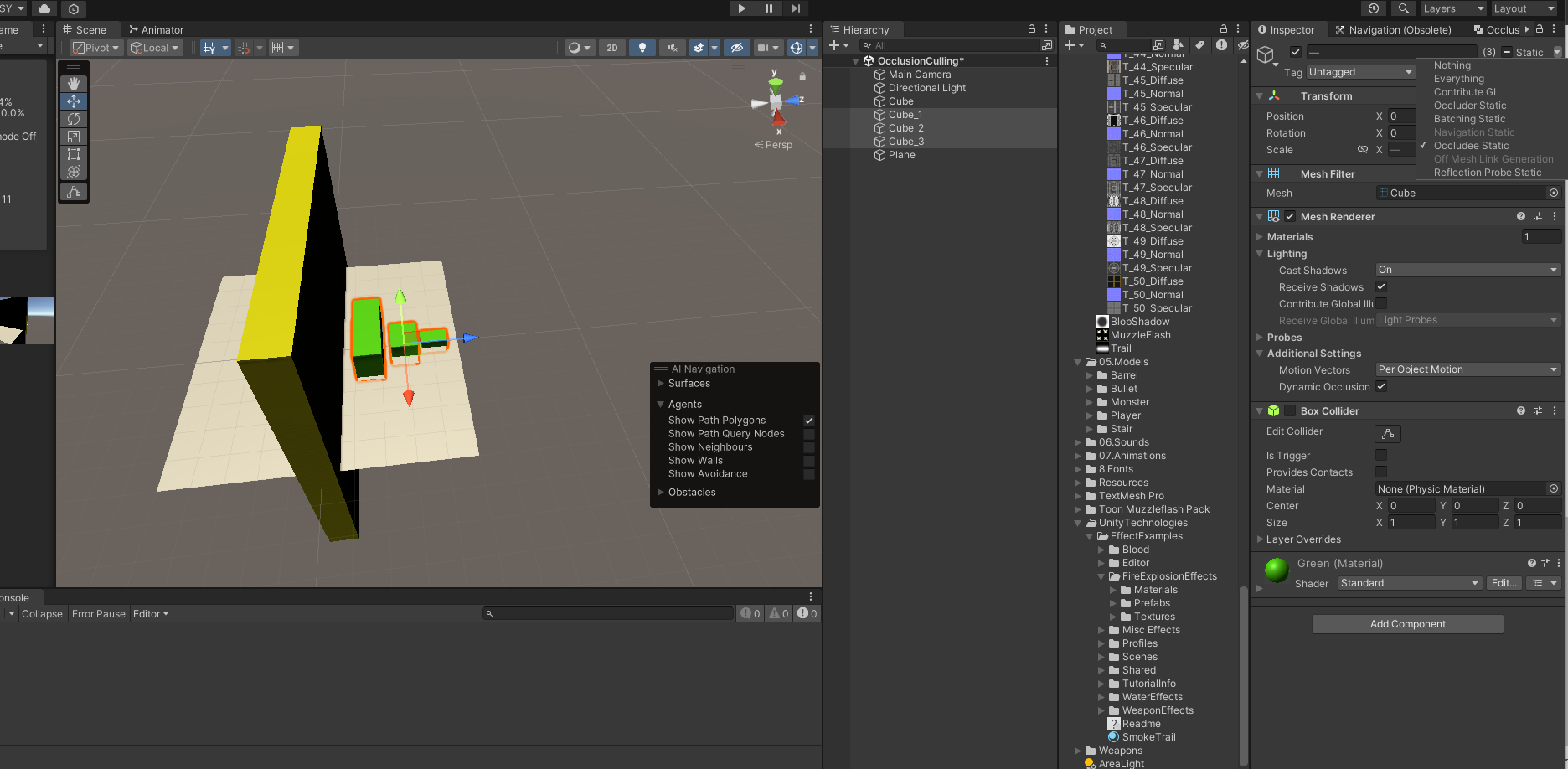 오클루전 컬링(Occlusion Culling)은 다른 오브젝트에 가려(오클루전된) 카메라에 보이지 않는 오브젝트의 렌더링을 비활성화하는 기능입니다. 3D 컴퓨터 그래픽스에서는 대부분의 경우 카메라에서
