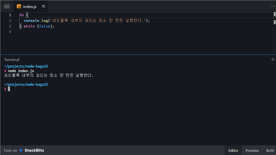 단, 이 경우 do의 코드블록 내부의 코드가 최소 한 번은 실행