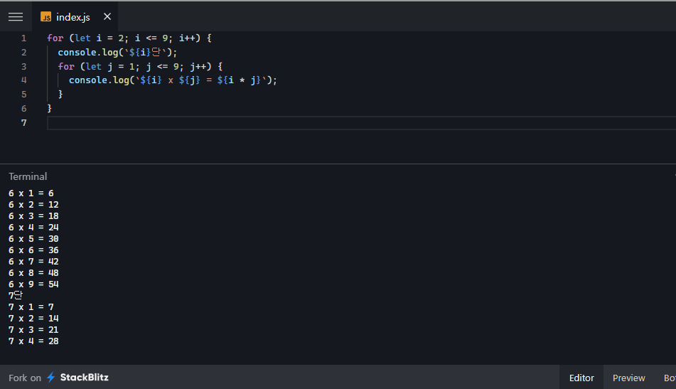 반복문은 또한 중첩이 가능하다 그러기에 구구단도 출력이 가능하다.