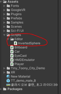 InvertedSphere 스크립트는 Editor폴더에 넣어주어야 한다.