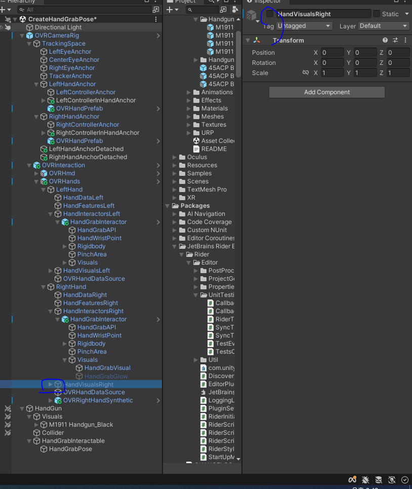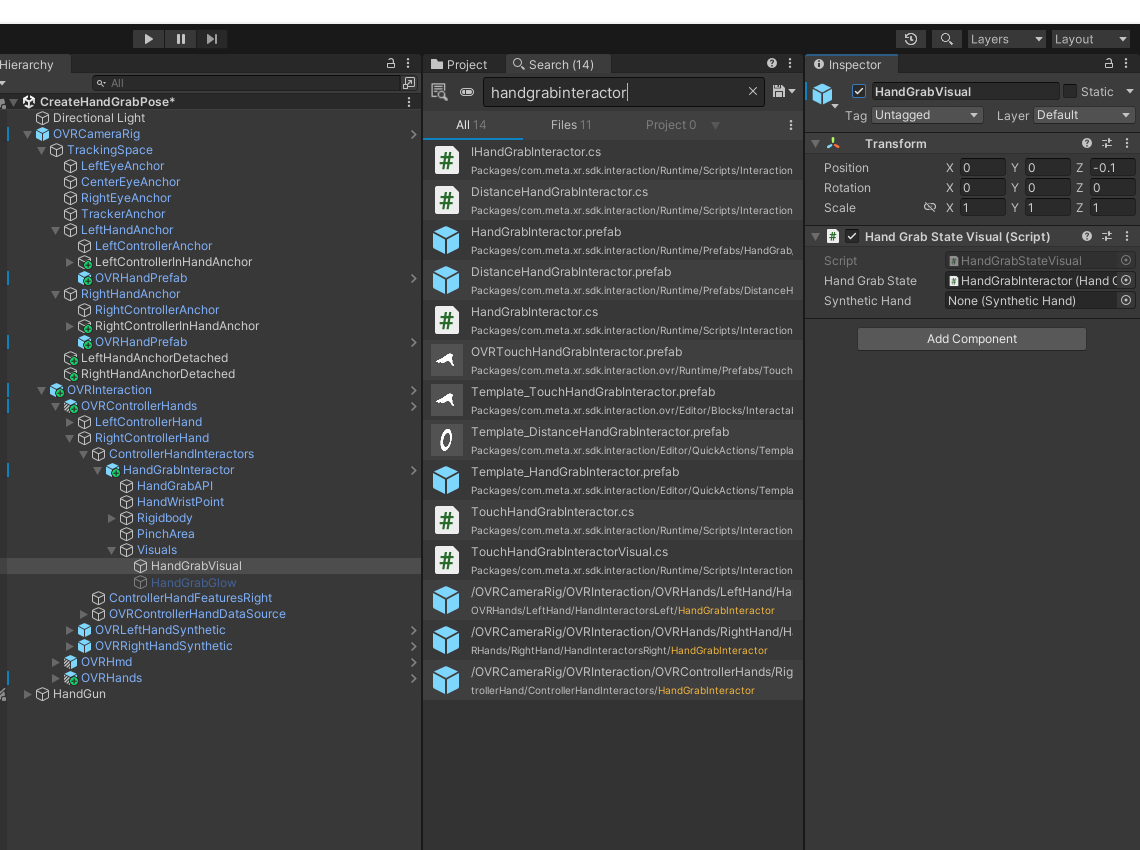 손의 잔상을 없애기 위해 Hand Grab Interactable 을 비활성화 or 삭제한다.