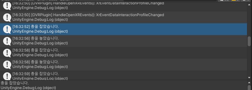 이제 콘솔에 총을 잡으면 출력이 되도록 할것이다.