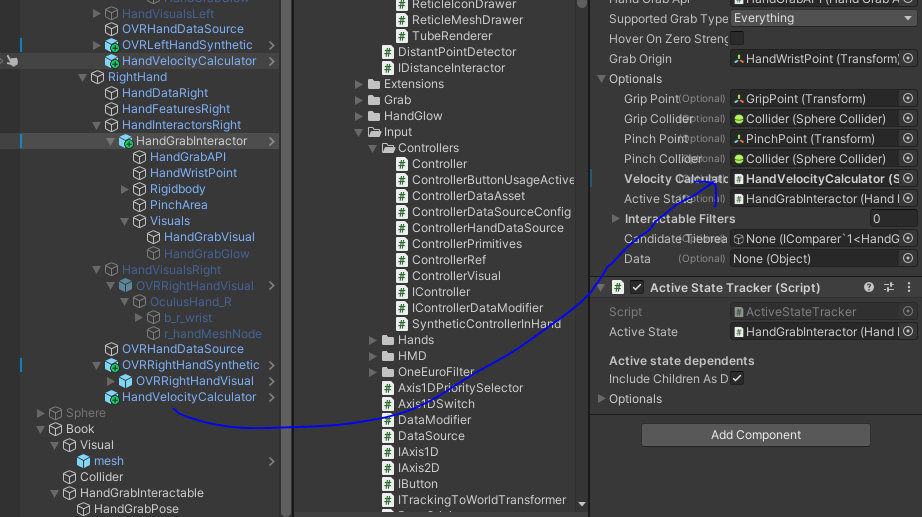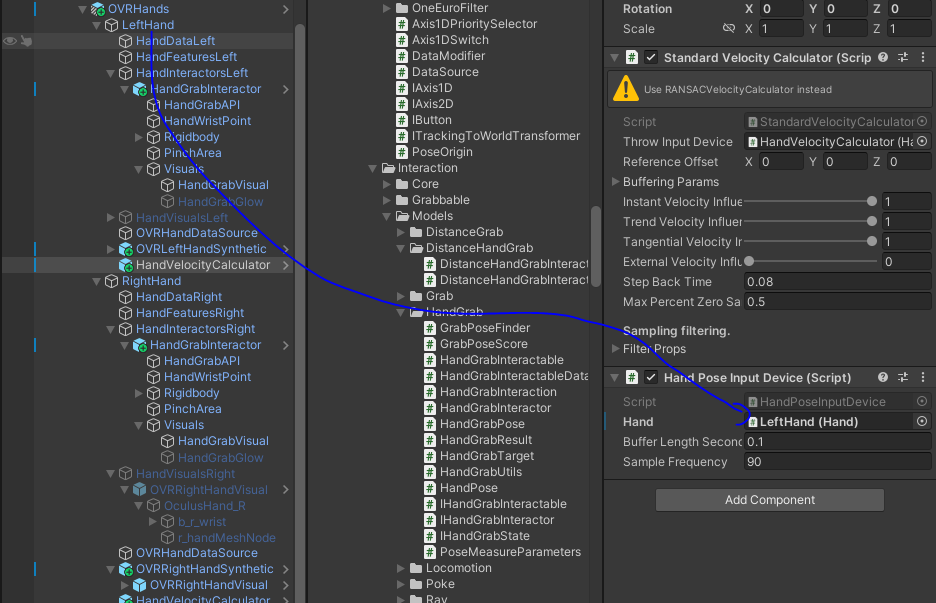 프로젝트에 있는 HandVelocityCalculator 추가 한후