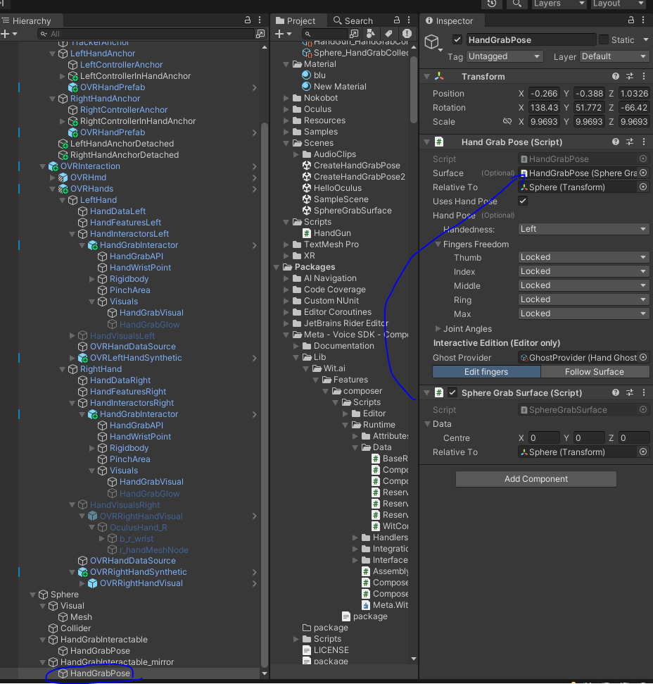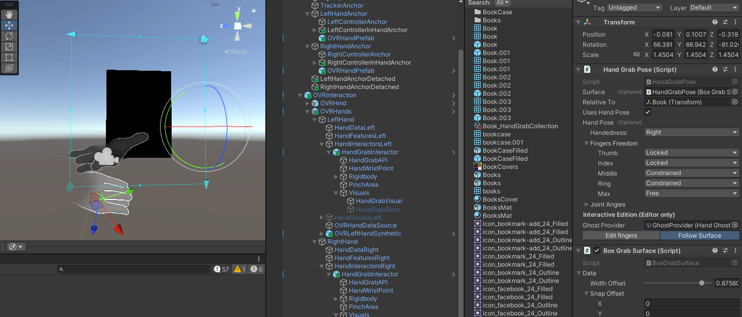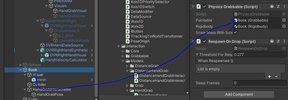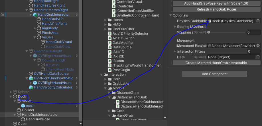 생성된 Hand Grab Pose에 Box Grab Surface 컴포너트를 추가한 후