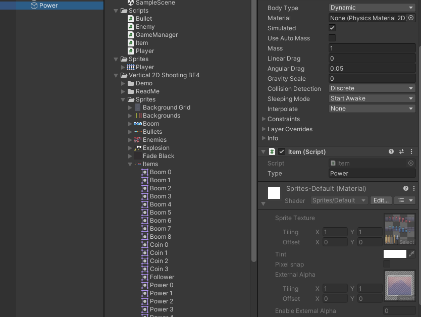 플레이어가 아이템을 먹어야하기에 onTriggerEnter2D를 사용할 것이다.