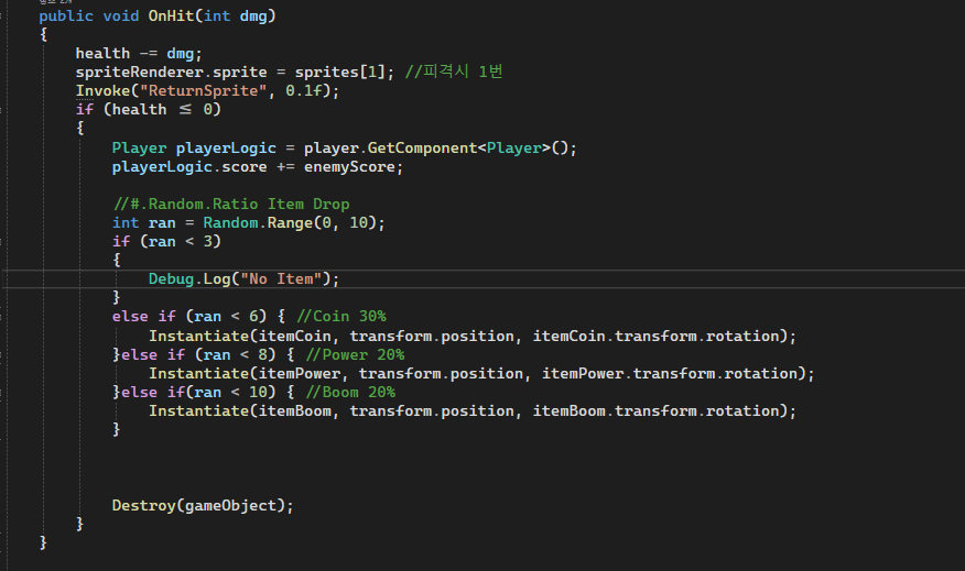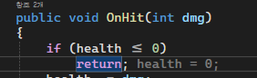 코드를 잘 살펴보면 디스트로이 되기 전에 온히트가 2번이라는 것을 알 수 있다.