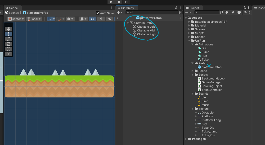 만들어진 발판 프리팹에 Obstacles를 추가할건데 이것을 추가할 때는