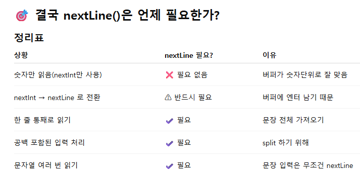 nextInt는 엔터를 버퍼에 남기기 때문에