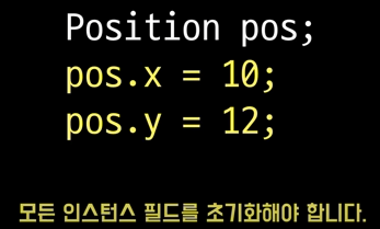 public Position(int x, int y)//매개 변수 없는 생성자 사용불가