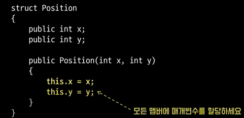 모든 구조체 형식은 하나 이상의 생성자를 갖는다.