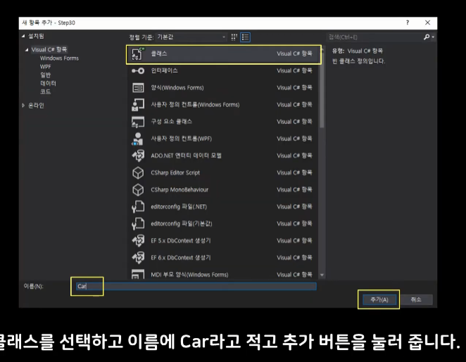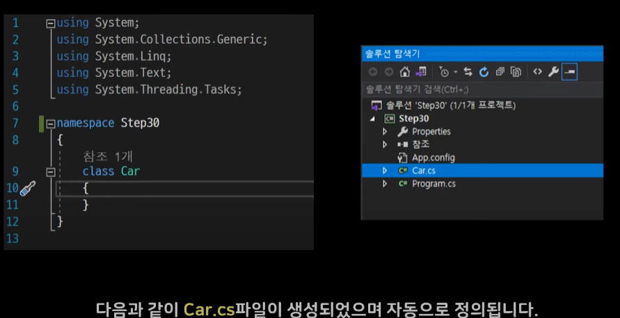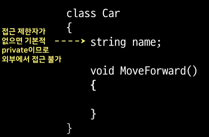 클래스에 정의된 메서드 호출 => car.MoveForward();