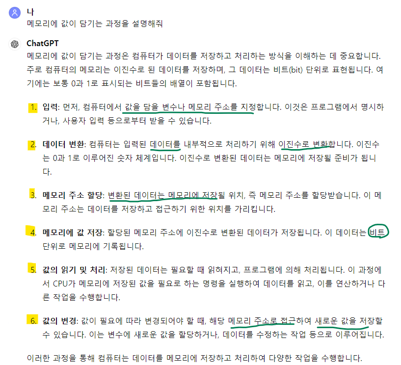 메모리에 값이 담기는 과정?
