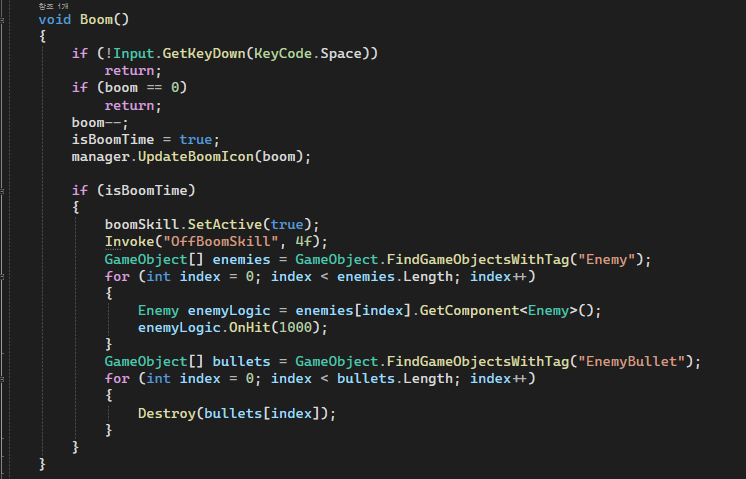 Boom을 먹으면 스킬을 활성화 하고 평상시에는 4초후 이펙트가 꺼지게 설정