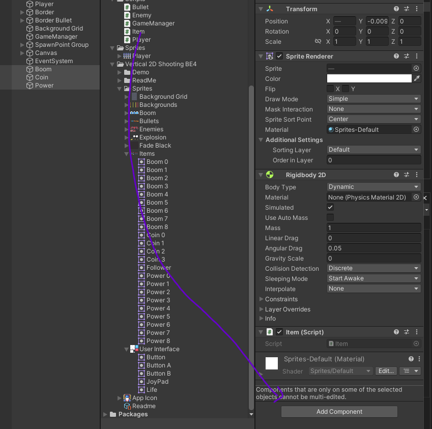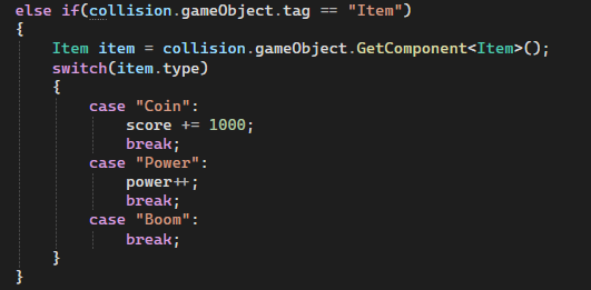 플레이어가 아이템을 먹어야하기에 onTriggerEnter2D를 사용할 것이다.