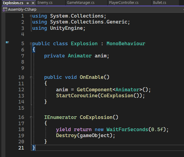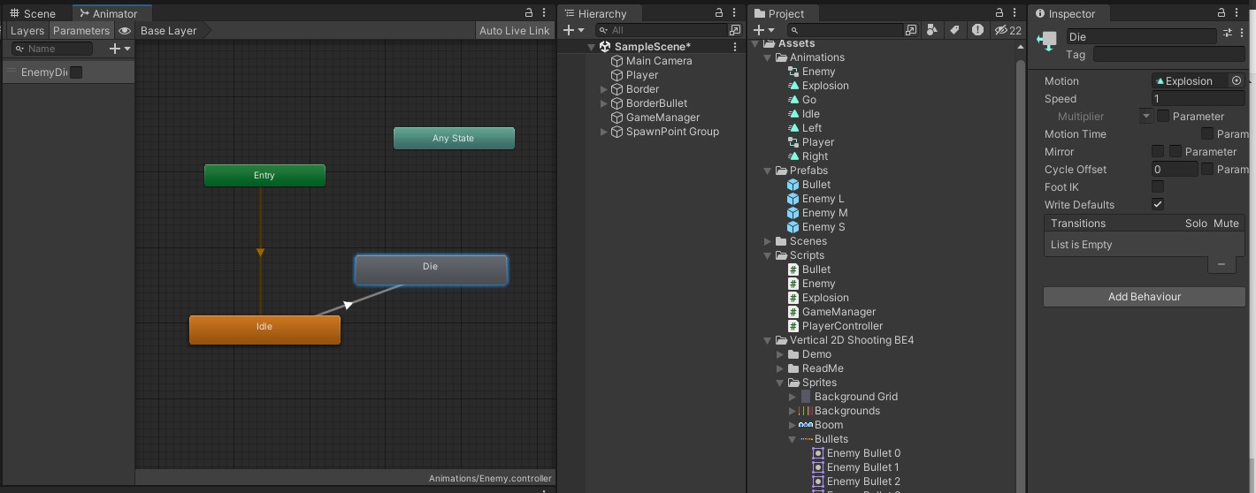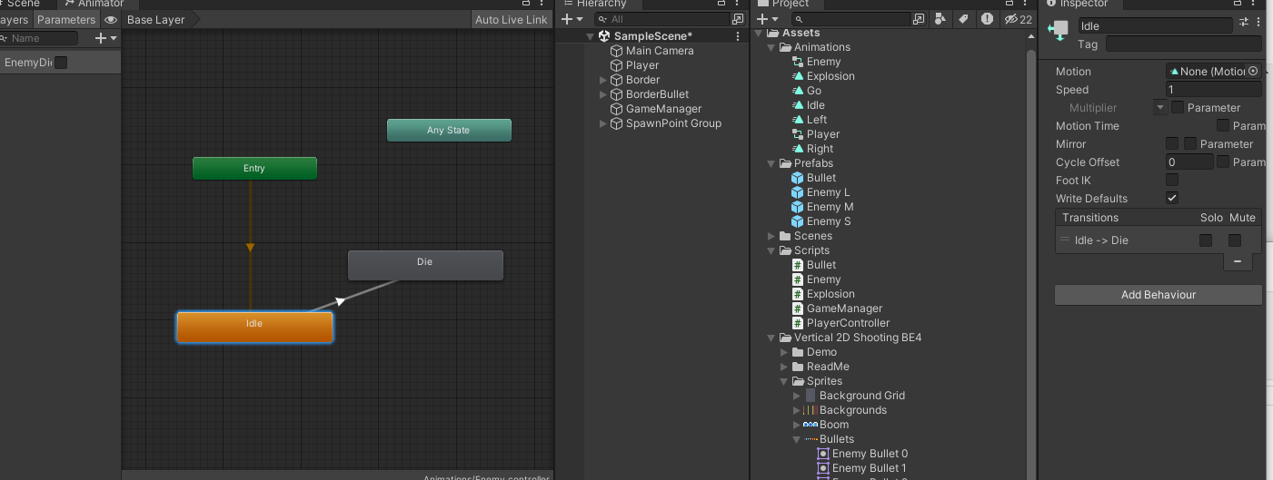적들은 배열로 관리하여 배열에서 찾아서 제거해준다.