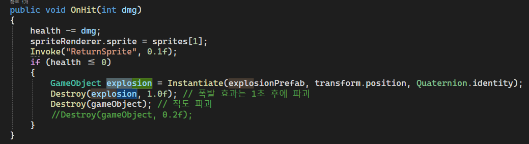 코드를 잘 살펴보면 디스트로이 되기 전에 온히트가 2번이라는 것을 알 수 있다.