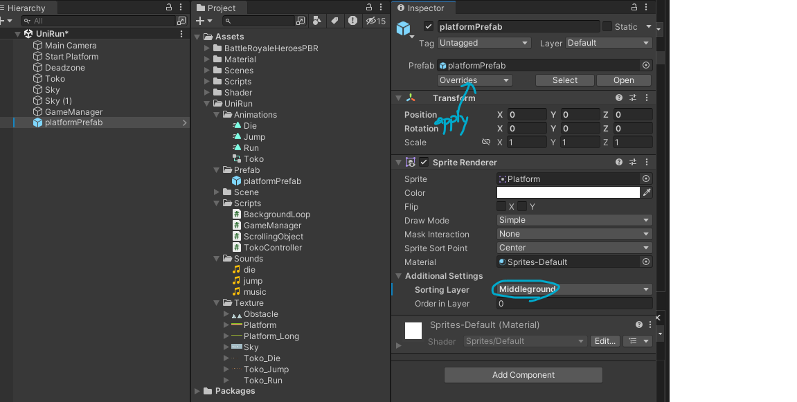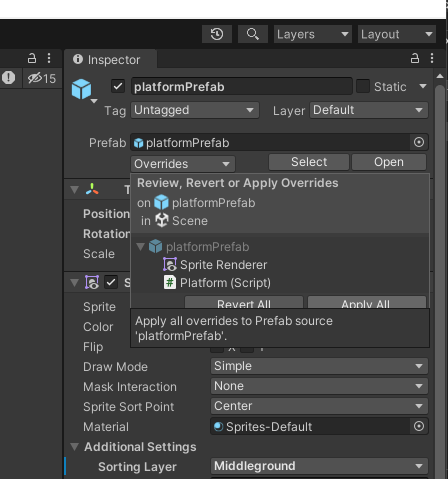 기존의 불렛b를 복사한후 프리팹모드에 들어가서 이름을 바꾸고 저장