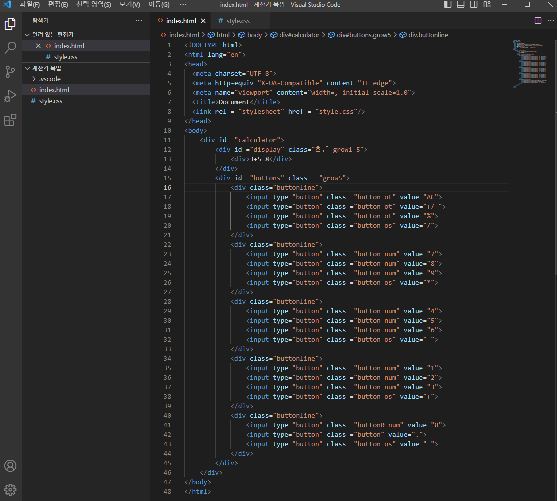 ps) 추가적으로 오늘 <input type="button" class="button ot" value="AC"> 같은 코드가 아닌