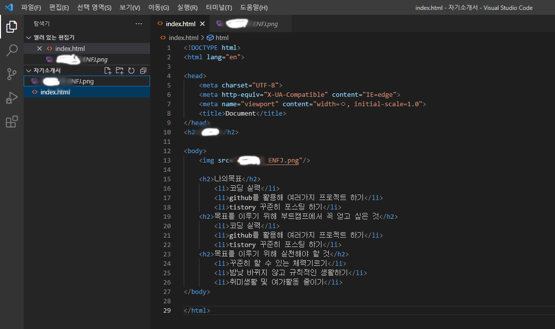 주말동안 배웠던 HTML과 CSS의 이론을 복습하였는데,