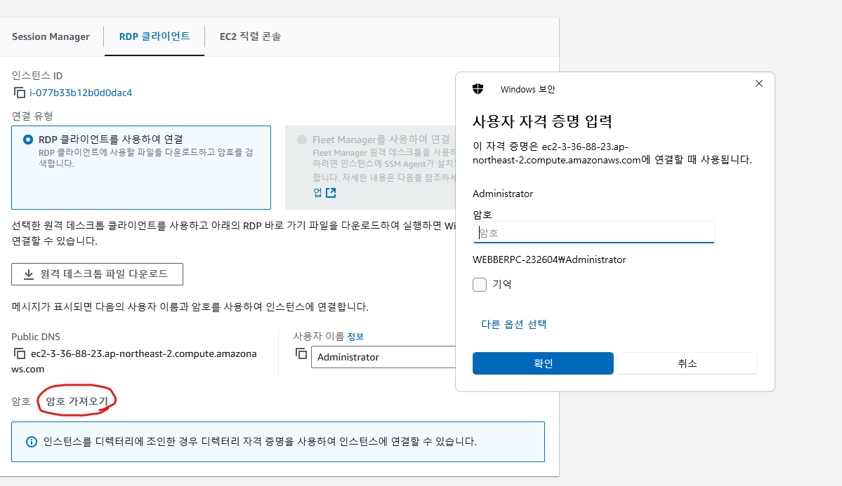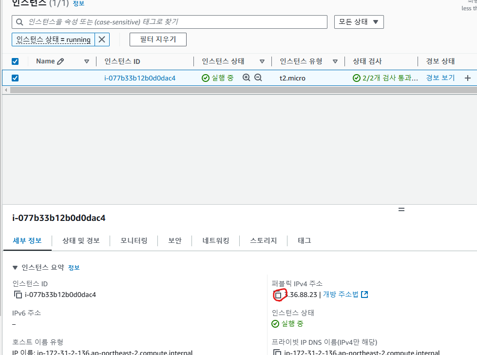 체크를 한 후 퍼블릭 IPv4 주소를 복사