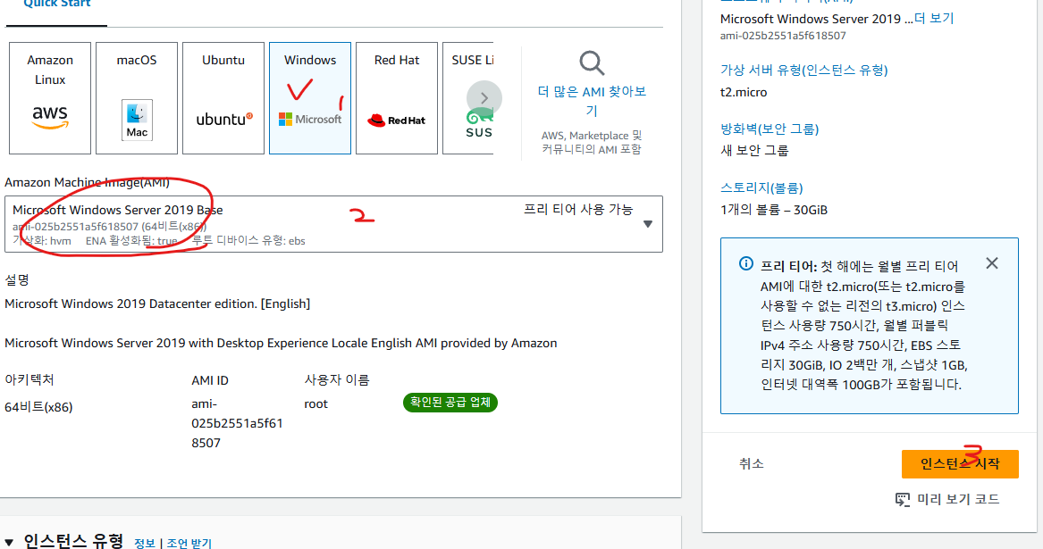 인스턴스 시작 클릭